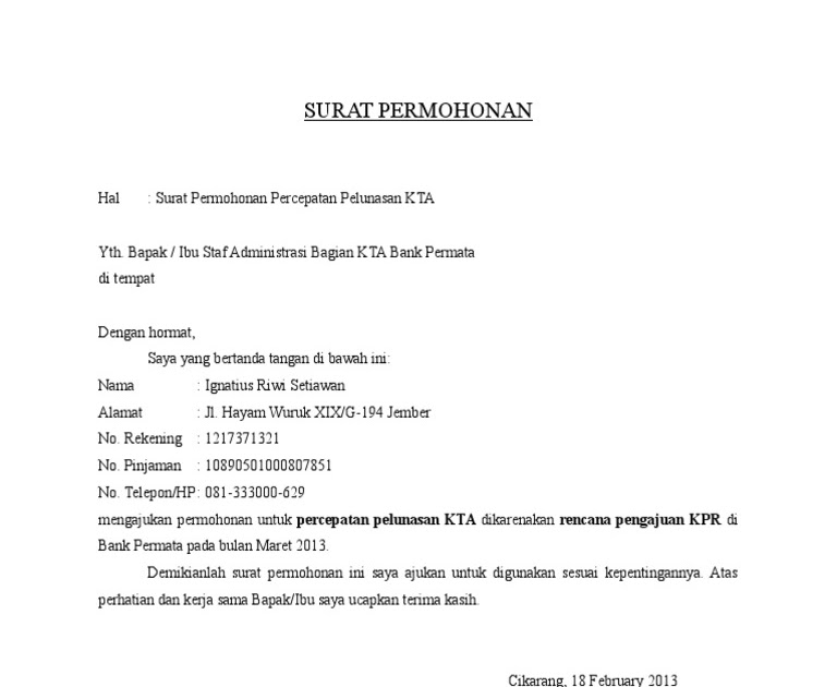 - Contoh Surat Rayuan Pengurangan Bayaran Pinjaman Mara